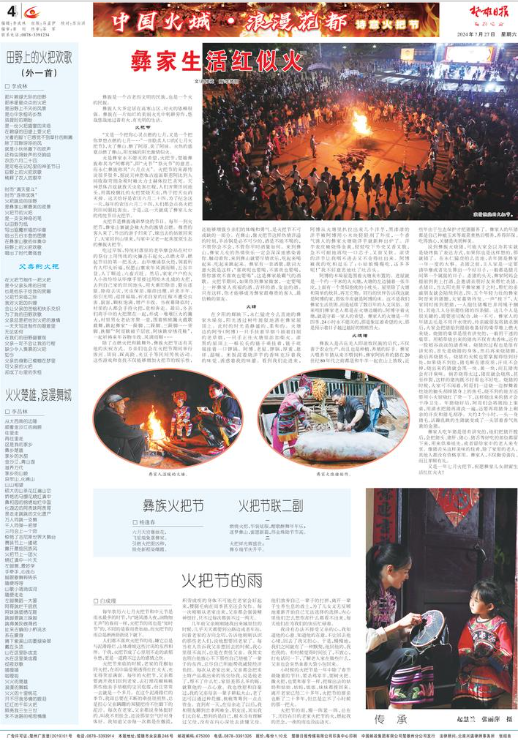 “又是一个把你心灵点燃的七月,又是一个把你梦想点燃的七月……”一首脍炙人口的《七月火把节》,火了彝山、醉了阿哥、美了阿妹。火热的盛夏点燃了彝山,阳光城的阳光激情似火。