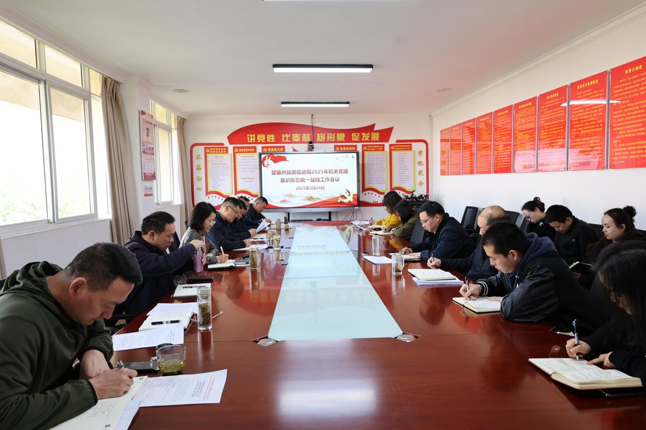 3月24日,楚雄州投资促进局召开2025年机关党建、意识形态、统一战线工作会议,传达学习全国、全省、全州组织部长会议、宣传部长会议及统战部长会议精神,安排部署2025年相关工作。州投资促进局党组书记、局长孙绍兴主持会议并讲话。