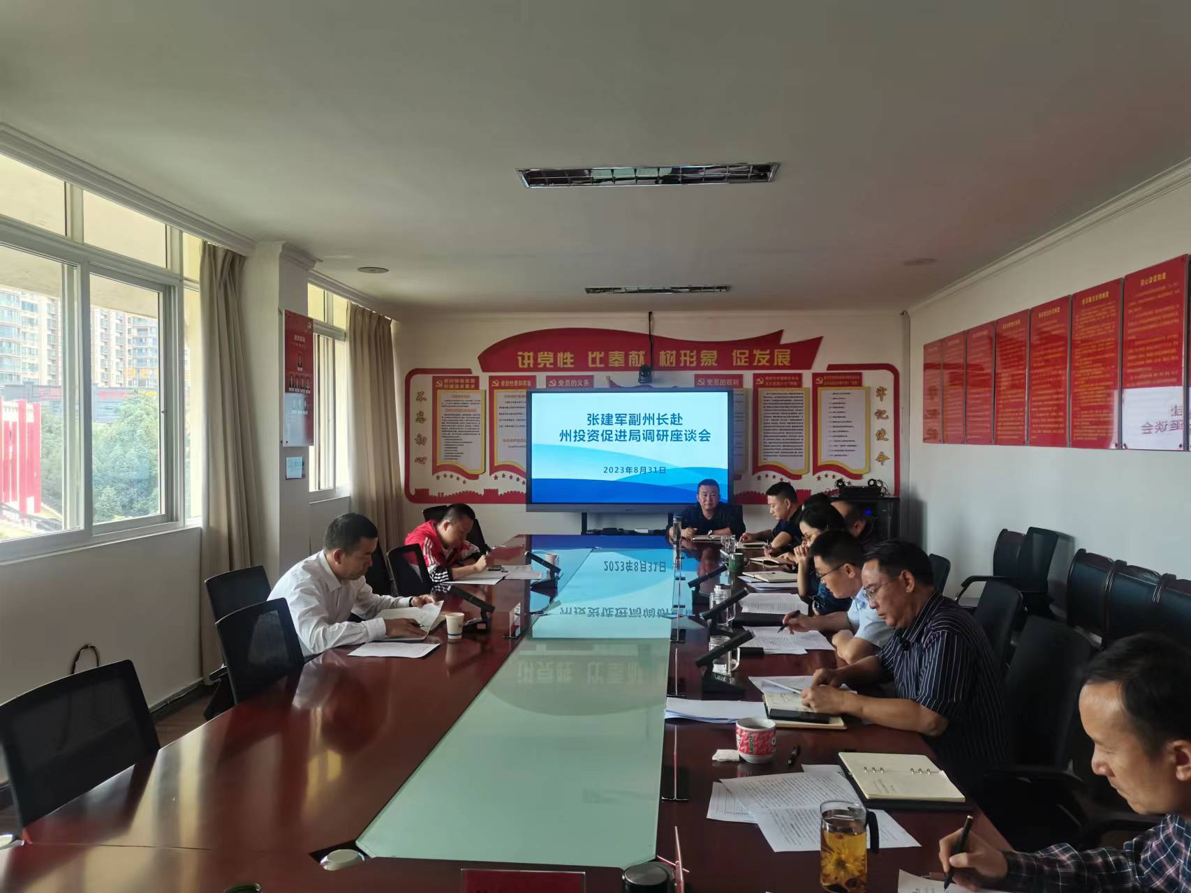 8月31日,州委常委副州长张建军轻车简从深入州投资促进局,听取工作汇报,了解干部情况,研究推进全州下步招商引资重点工作。