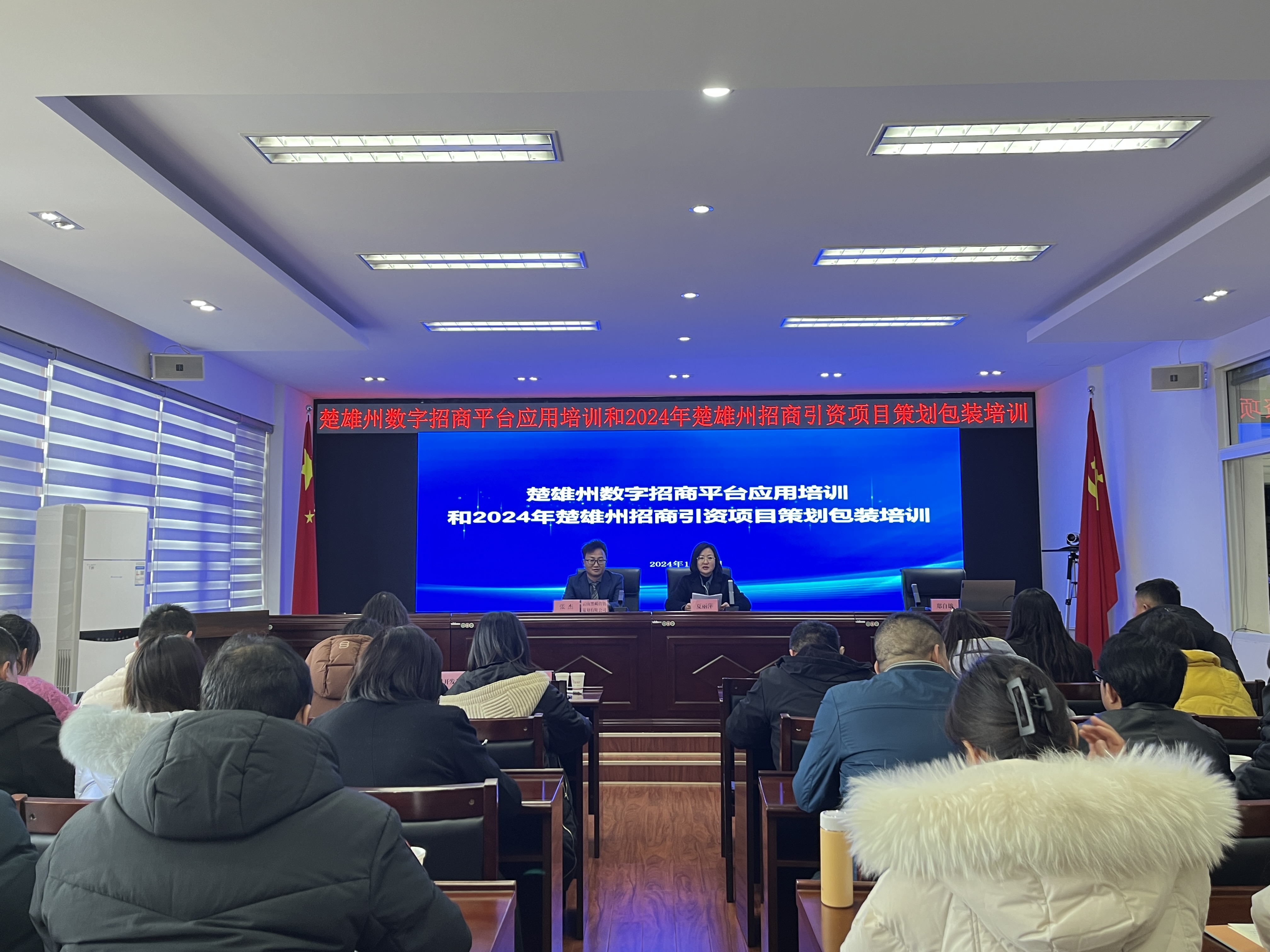 1月24日下午,州招商引资委员会办公室组织举办了楚雄州数字招商平台应用培训和2024年楚雄州招商引资项目策划包装培训,州发展和改革委、州工业和信息化局、州农业农村局、州文化和旅游局、州科技局等12个部门和十县市(楚雄高新区)投资促进局、四个重点产业园区管委会相关人员参加培训。