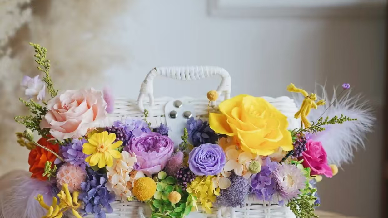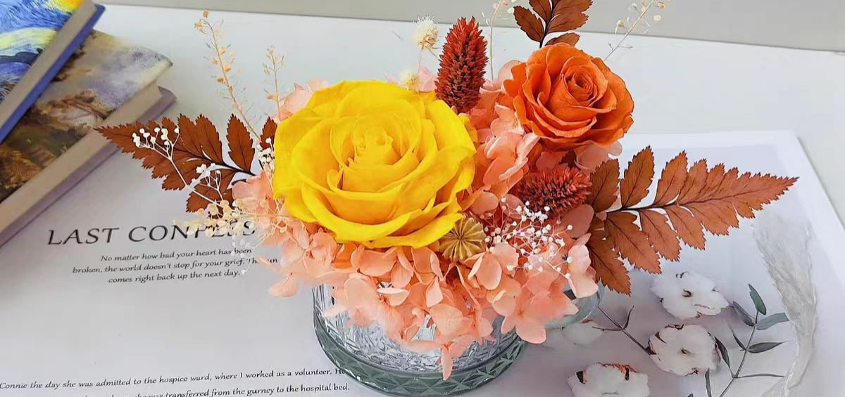 (二)建设内容:依托姚安县花卉资源,新建加工厂房、原材料仓储区,冷库、污水处理及配套设施;购置烘干机、脱色机等设备。从永生花原料的精选采集与精细处理,到设计师团队创意打造的花束、花篮、花环、挂饰及家居装饰摆件等多样化、高品质的永生花工艺品。
