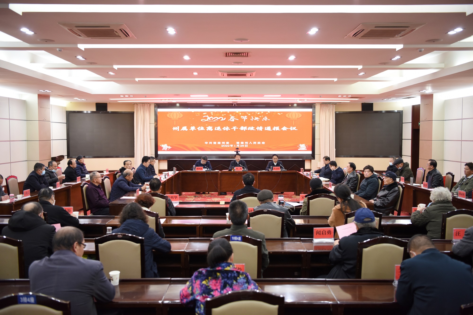 1月28日下午,州委、州政府召开州属单位离退休干部政情通报会,通报2021年全州经济社会发展情况和今年工作打算。