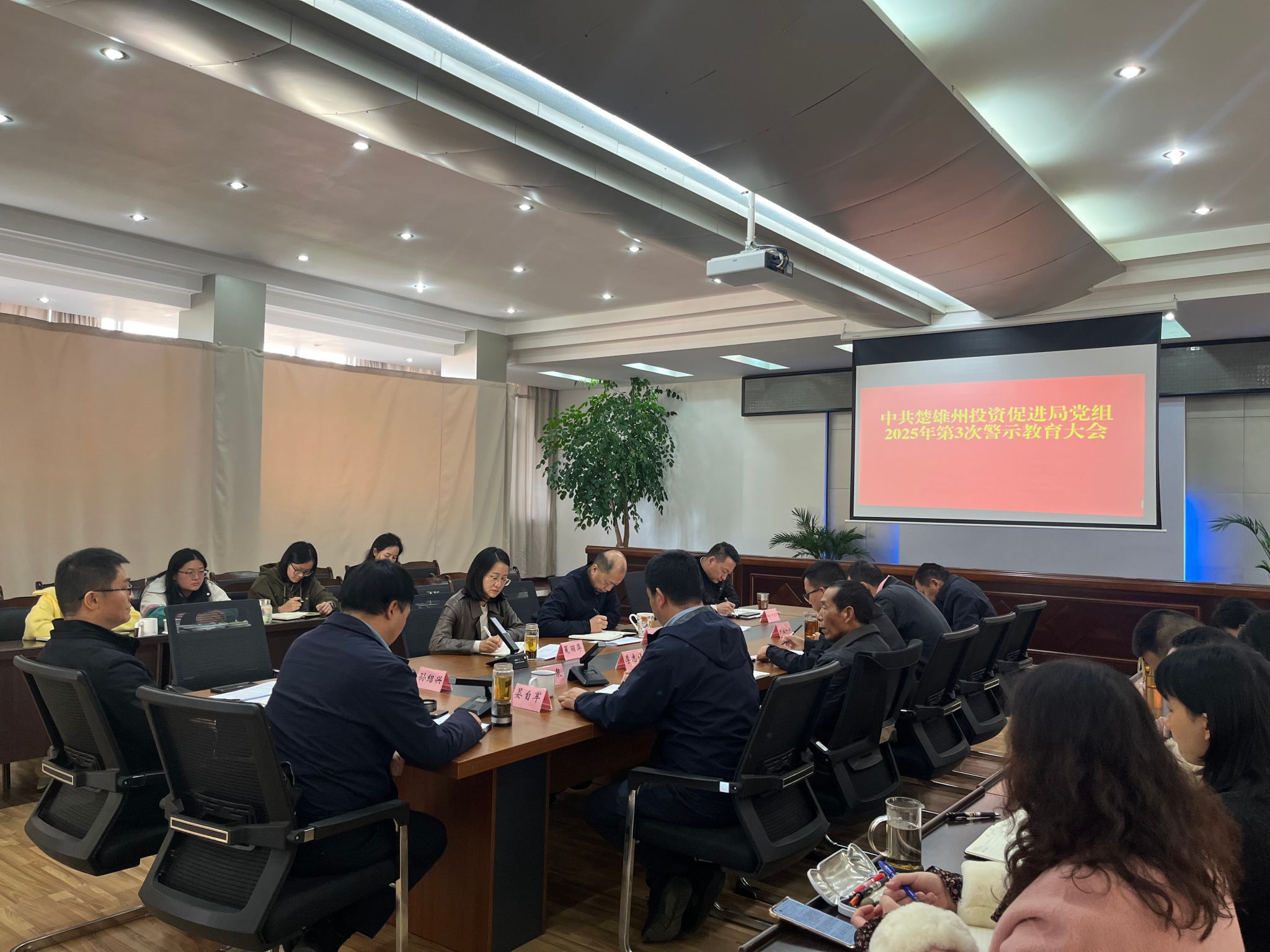 11月17日,州投资促进局召开2025年第三期警示教育大会,州纪委州监委驻州林草局纪检监察组组长晏自军到会并作指导讲话,州投资促进局党组书记、局长孙绍兴主持会议并开展集体廉政提醒谈话,局机关全体干部职工参加会议。