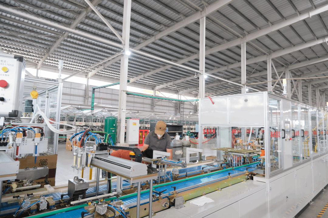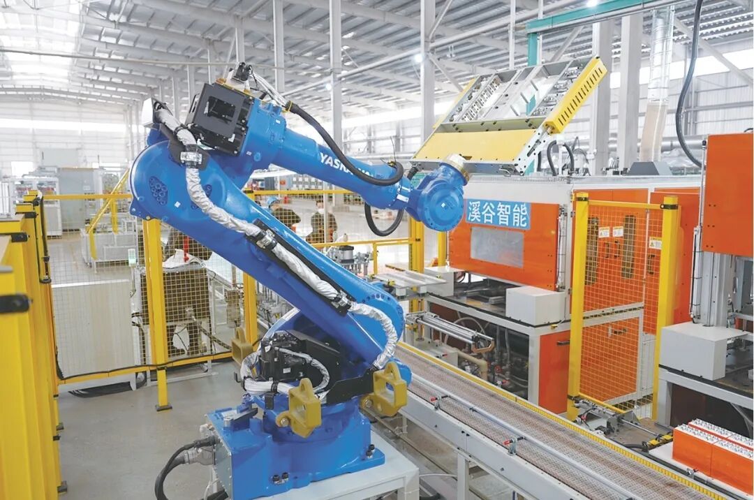 云南超能电源科技发展有限公司的智能机械臂在生产线上作业。记者 尹文才 摄